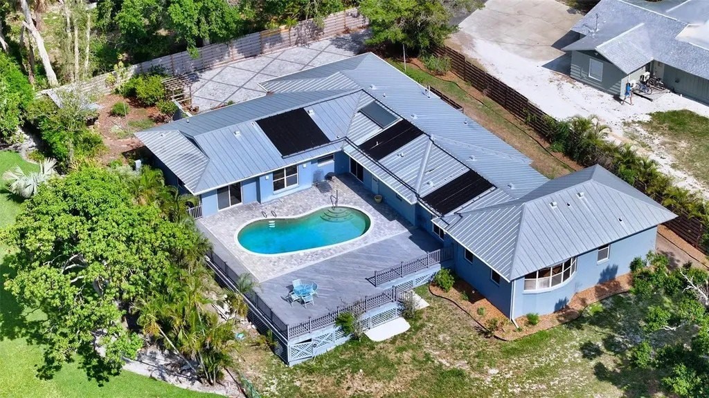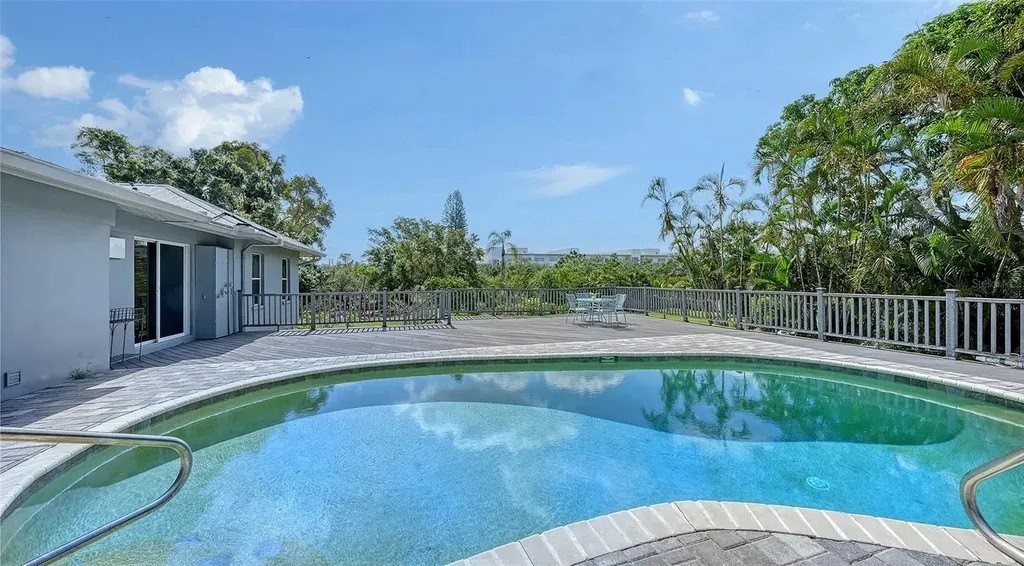 NOW RE-PRICED AND AN AMAZING VALUE, THIS GREAT WATERFRONT PROPERTY and single-family pool home is sited on nearly 1 acre of desirable, elevated land along the serene shores of Phillippi Creek and is a rare opportunity to own a private waterfront retreat in the heart of Sarasota. Tucked away in a quiet, established neighborhood and built at 16 ft above sea level in the X flood zone with great proximity to US 41 and amenities, this 4-bedroom, 3.5-bathroom plus office, 1-story residence seamlessly blends modern comfort with timeless Florida charm. Inside, you'll find a spacious open-concept layout filled with natural light, designed to maximize both function and flow. Rich hardwood flooring and durable tile span the entire home, creating a warm and cohesive atmosphere. The thoughtfully designed eat-in kitchen, complete with granite countertops, stainless appliances, custom cabinetry and ample prep space is perfect for hosting gatherings or preparing family meals. A generous dining area, large primary suite with ensuite bath, lovely office with built-ins, 3 additional ample guest bedrooms, and pool bath offer flexibility for both everyday living and entertaining. The home also features a laundry room with cabinetry, attached two-car garage, abundant storage, and multiple access points to the outdoor living areas. Step through sliding glass doors to your own tropical oasis: an expansive pool, lanai and custom-built Trex deck offering several lounging, dining, and entertaining areas. Water enthusiasts will delight in the property's direct frontage on Phillippi Creek, providing quick access to the Intracoastal Waterway with just one fixed bridge. Whether you're a seasoned boater or simply love the idea of living on the water, this location is a dream come true. The oversized lush lot with mature tropical trees including palms, bottle-brush, mango and ficus trees, offers endless potential, with plenty of room to add a custom spa, outdoor kitchen, or even expand the home to create a guest house or Accessory Dwelling unit. With no HOA restrictions, you have the freedom to truly make this property your own. Conveniently located just minutes from Sarasota's award-winning Gulf beaches, vibrant downtown, University Town Center, I-75, and an array of world-class shopping, dining, and cultural attractions, this home offers the best of coastal living with unbeatable accessibility. Whether you're seeking a year-round residence, a seasonal getaway, or an investment in a high-demand waterfront location this residence delivers on every level. Don't miss your chance to own this extraordinary piece of Sarasota paradise!